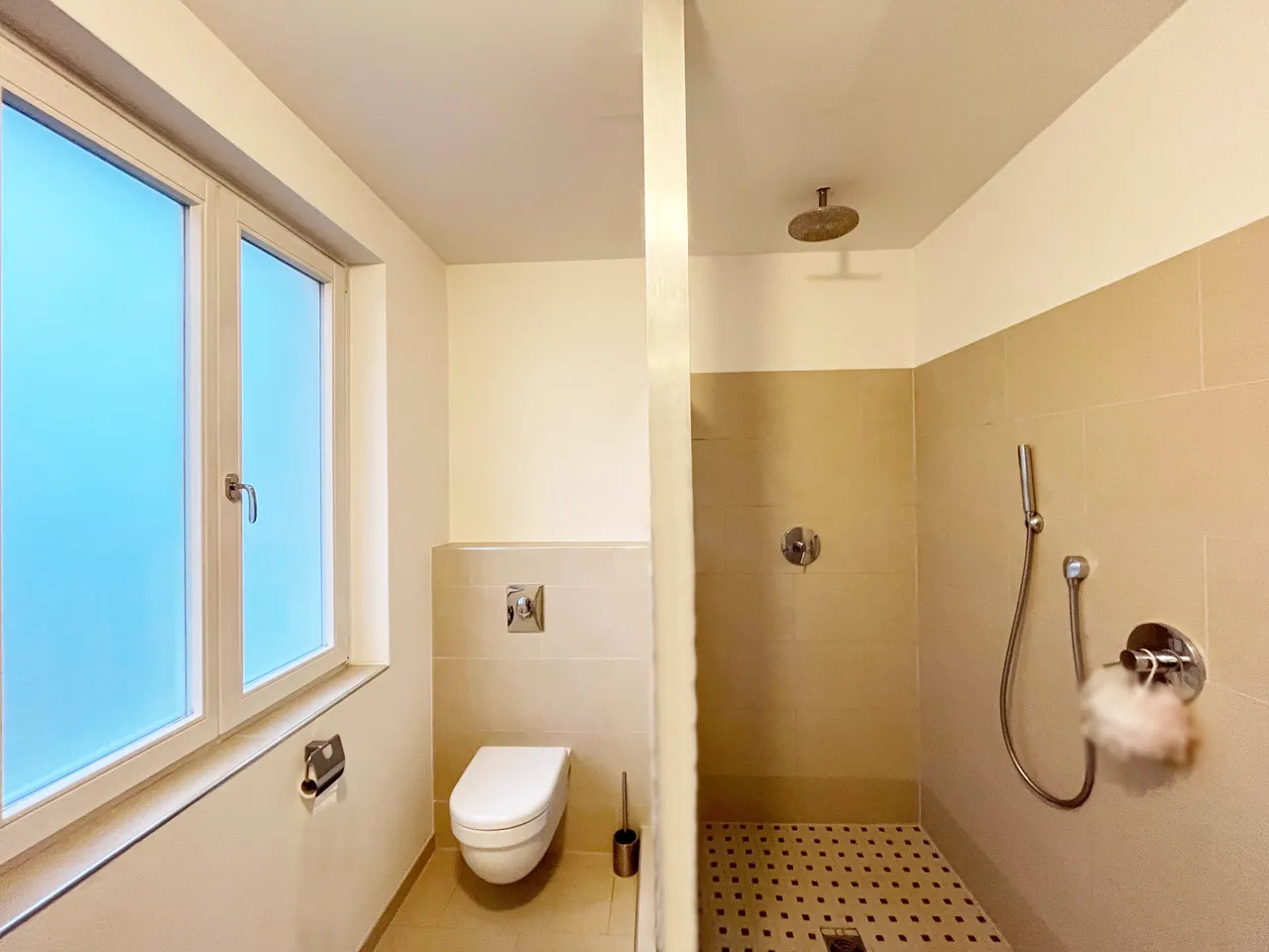 Im Dachgeschoss des Hauses befinden sich drei weitere Räume, die allesamt mit einer Klimaanlage ausgestattet sind. Diese eignen sich ideal als Kinderzimmer, Arbeitszimmer, Gästezimmer oder Hobbyraum. Zudem verfügt das Dachgeschoss über ein weiteres Tageslichtbadezimmer mit Dusche.