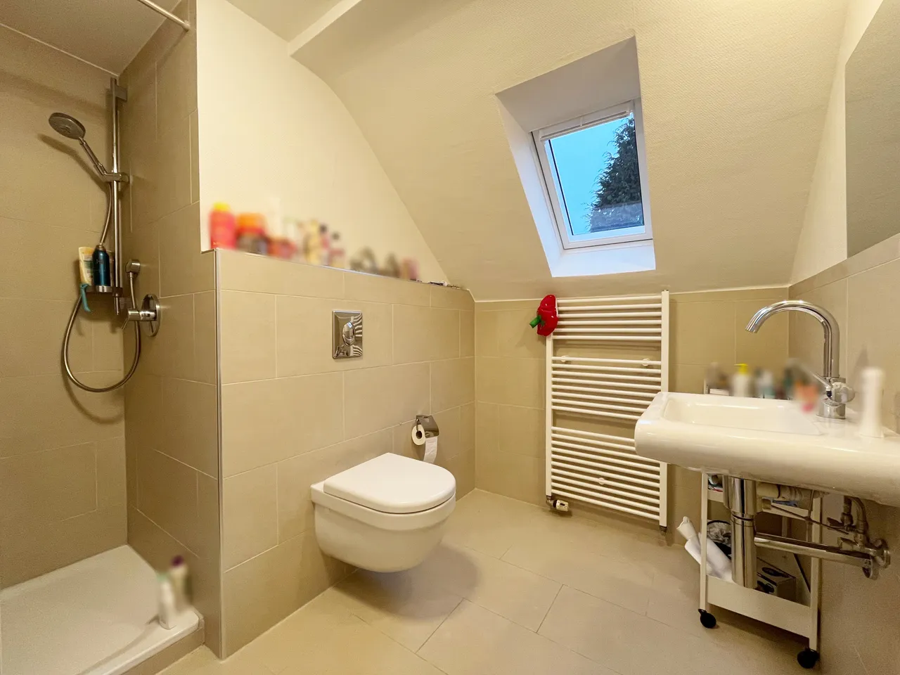 Das großzügige Tageslicht-Badezimmer im Obergeschoss lässt keine Wünsche offen: Mit einer großen Badewanne und einer ebenerdigen Dusche ausgestattet, entsteht eine Wohlfühloase für entspannende Stunden.