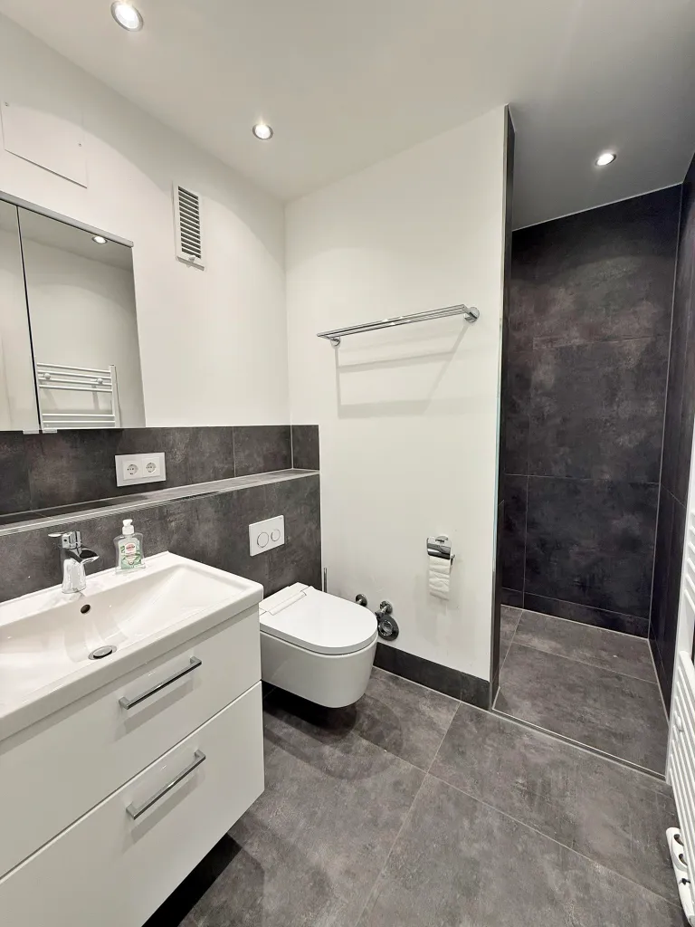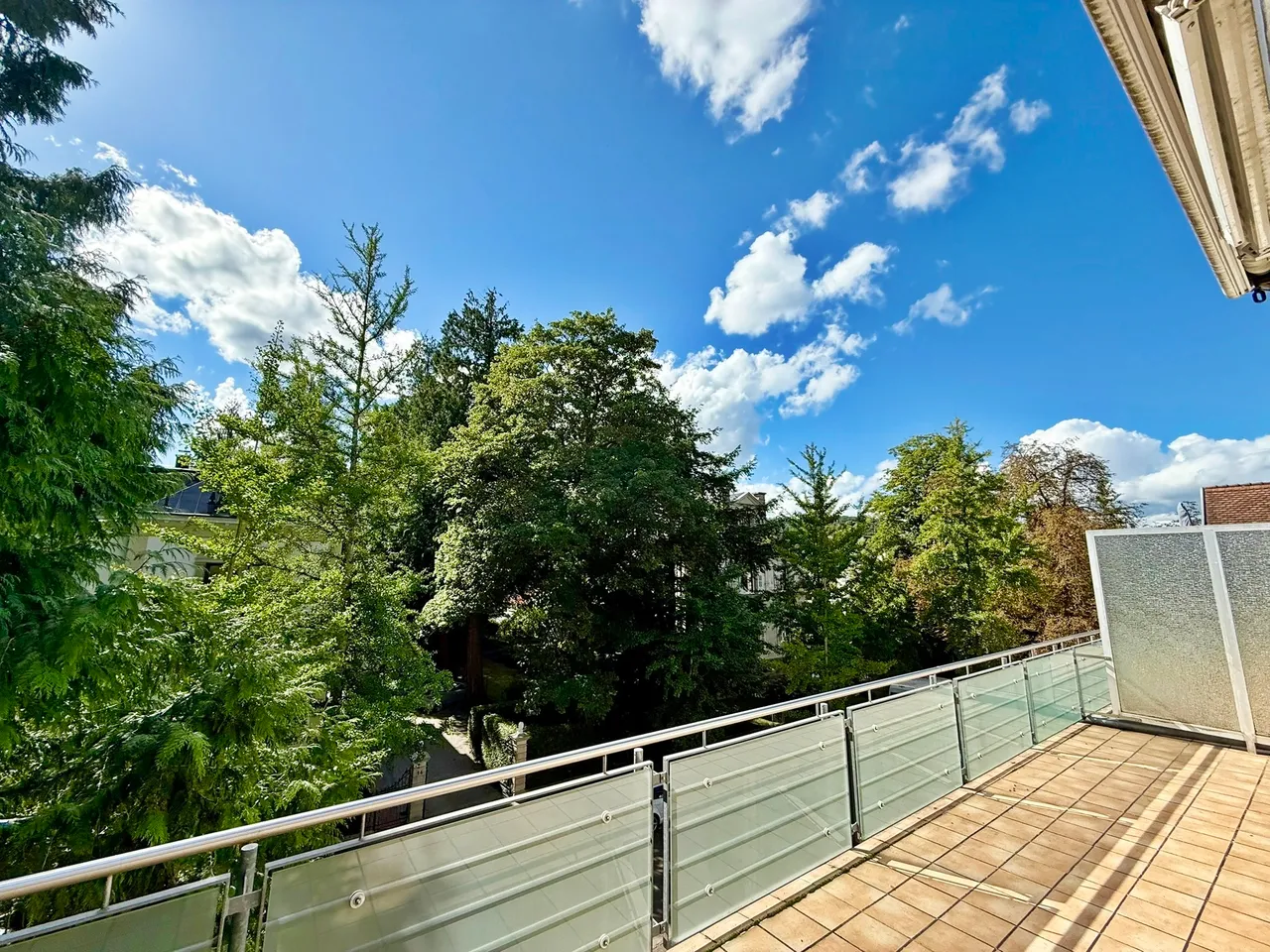 Ein Highlight ist der großzügige Wohn- und Essbereich mit direktem Zugang zur großen Dachterrasse, die Ihnen einen beeindruckenden Blick ins Grüne und über die Dächer der Stadt eröffnet. Gleichzeitig genießen Sie in der Wohnung ein hohes Maß an Ruhe und Privatsphäre – eine seltene Kombination.